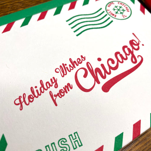 do you love vintage ephemera as much as i do? how 'bout chicago? this card combines those two for you to share holiday greetings with friends near and far. let them know you're thinking of them from your amazing city. interested in a custom airmail cards? email us! we can help with a 48 card minimum order.