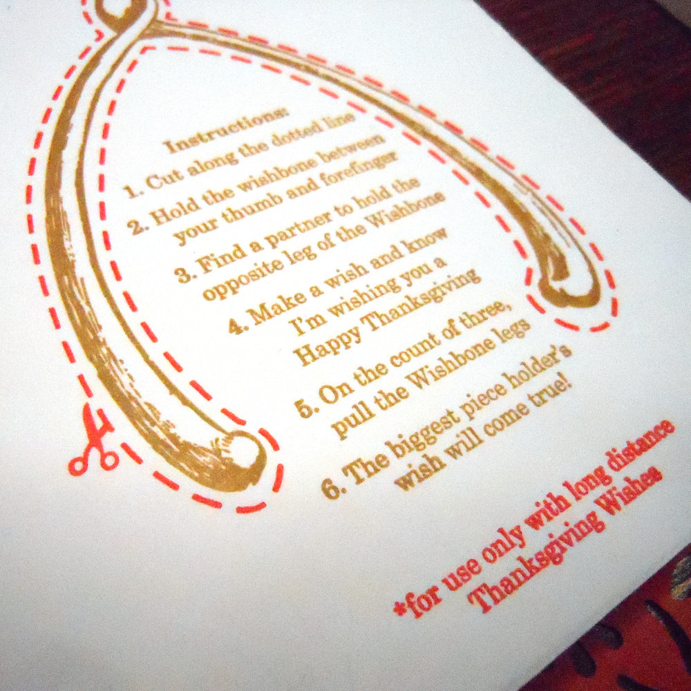 do you have thanksgiving traditions? we do. every year we would dry out the wishbone. the bone would sit out for weeks until it was brittle enough to break. my brother and i would check it often. every year we would make a wish and break the bone. my brother always won with the biggest piece. always. but that never kept me from wishing and trying year after year. this card is perfect for sending long distance thanksgiving greetings.