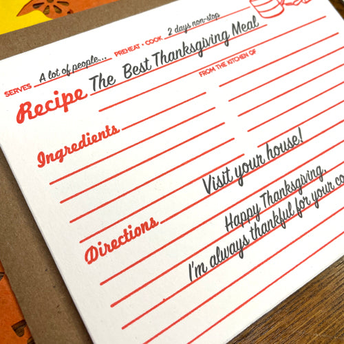 for my family and friends, thanksgiving's main even is the meal. i'm fortunate to have a partner who grills a delicious, juicy, turkey every year and i'm thankful for it. this card is perfect for your thanksgiving host.